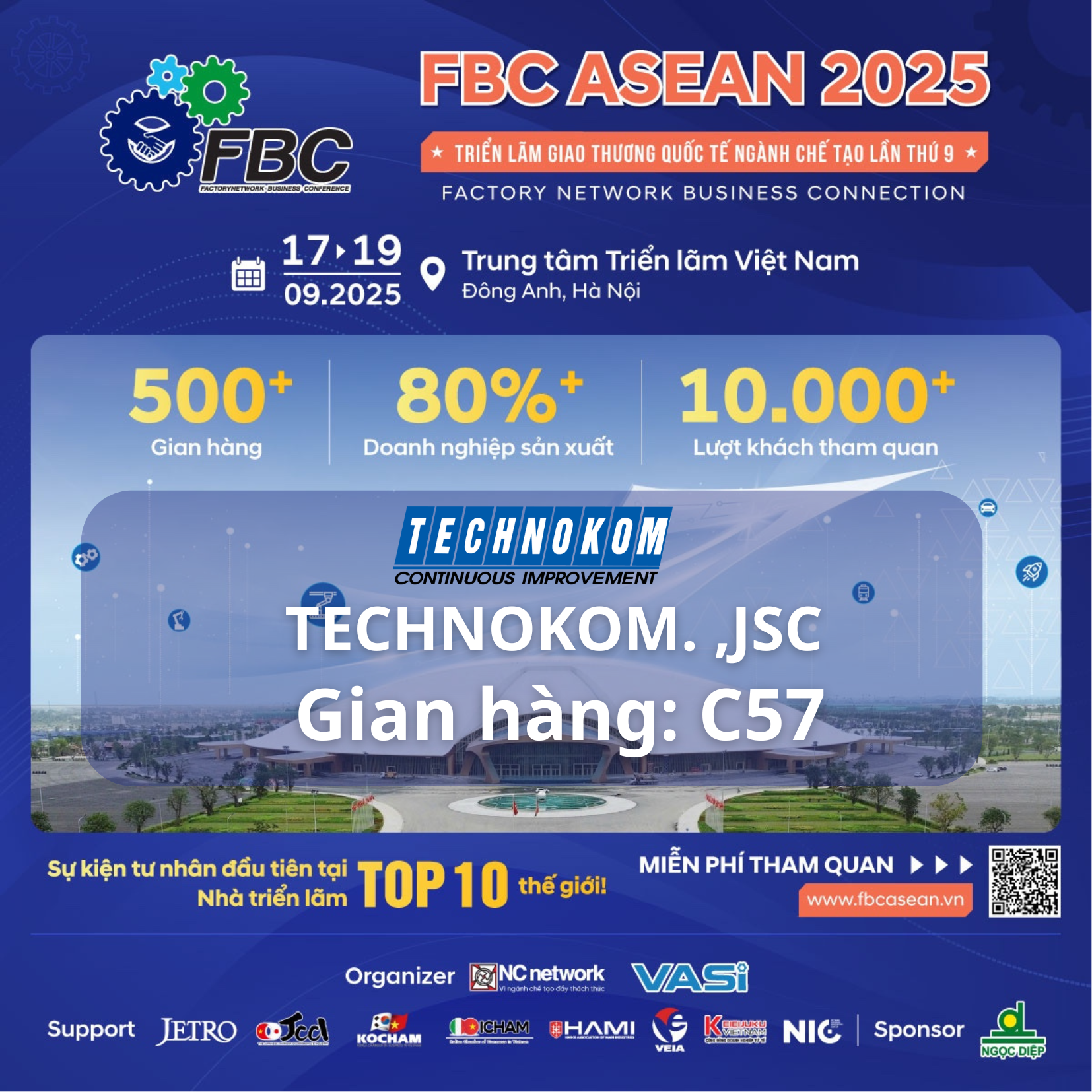 Lời đầu tiên, Công ty Cổ phần Technokom xin trân trọng gửi đến Quý Khách hàng - Quý Đối tác lời chúc sức khỏe và chào trân trọng nhất! Technokom hân hạnh mời Quý Khách hàng, Quý doanh nghiệp đến thăm quan gian hàng của chúng tôi tại “Triển lãm giao thương quốc tế ngành chế tạo lần thứ 8 FBC ASEAN 2025”, một trong những sự kiện có quy mô và uy tín trong ngành chế tạo Việt Nam.